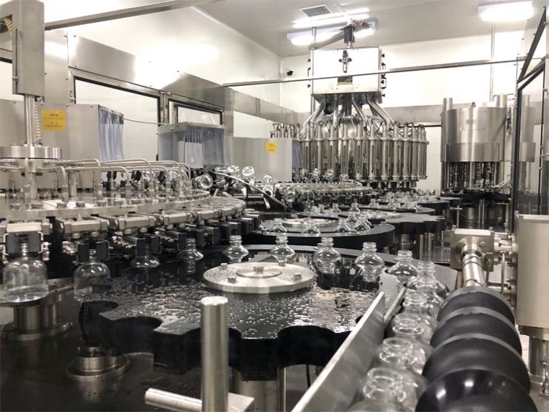 2017年,由廊坊百冠量身定制的20000B/H330ml)玻璃瓶灌裝生產線落戶涼露酒業,開啟了玻璃瓶酒類灌裝的新篇章。其中白酒定量灌裝一體機為四合一機型,具備沖瓶、瀝干、灌裝、封口功能,為百冠公司高端產品之一